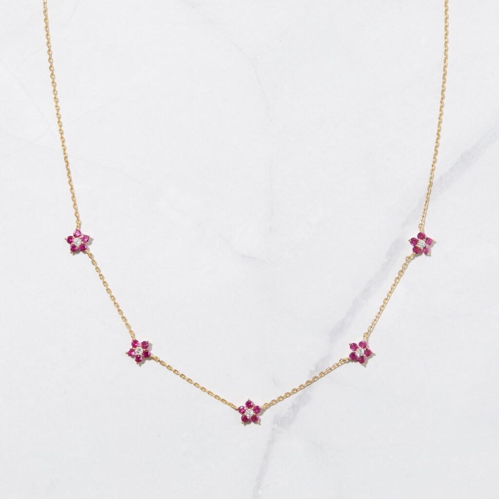 925 Silver Ruby Flower Necklace