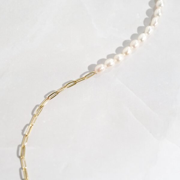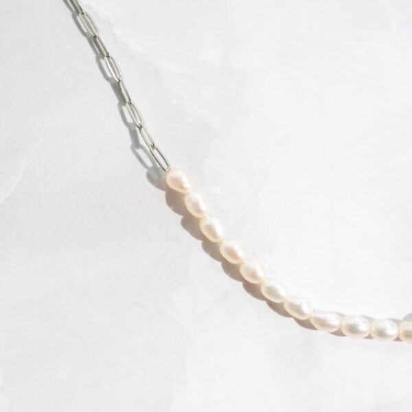 925 Silver Pearl & Paperclip Chain Necklace