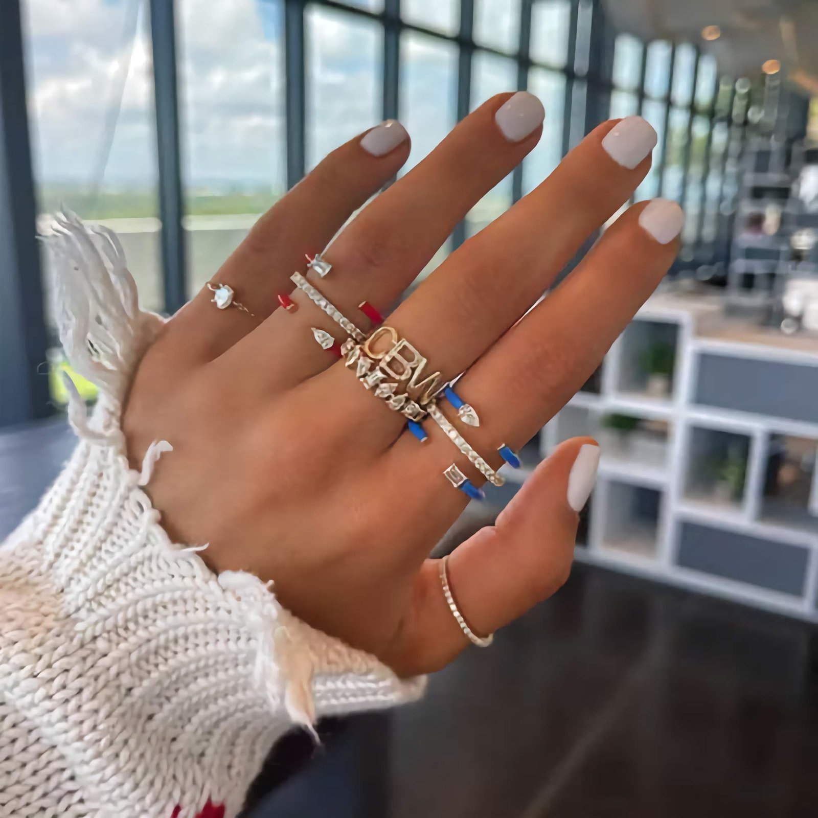 Nickel-free and hypoallergenic, it’s gentle on the skin and ideal for all-day wear. Perfect for gifting or personal styling, the Diamond Bold Mixed Initials Ring blends statement-making flair with sentimental value.
